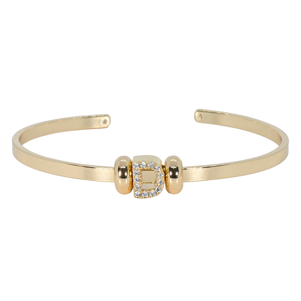 Mini CZ Initial Charm Cuff Letter D