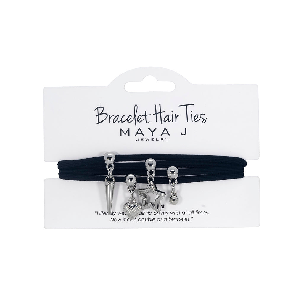 Maya J Jewelry takes two things we love to wear on our wrists, hair ties and trendy bracelets, and combines them into one fashionable jewelry accessory - Bracelet Hair Ties! It’s a piece that everyone is sure to love and actually use, easily mixed and matched with other bracelets you already own. At an affordable price, it’s great for all ages, arriving on a beautiful card of three designs. You’ll soon want to wear one on your wrist at all times!