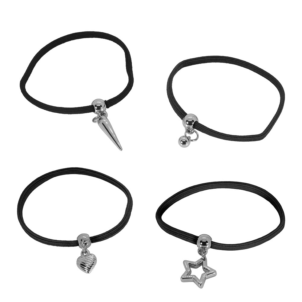 • Includes 1 set of 4 different Bracelet Hair Tie Elastics.