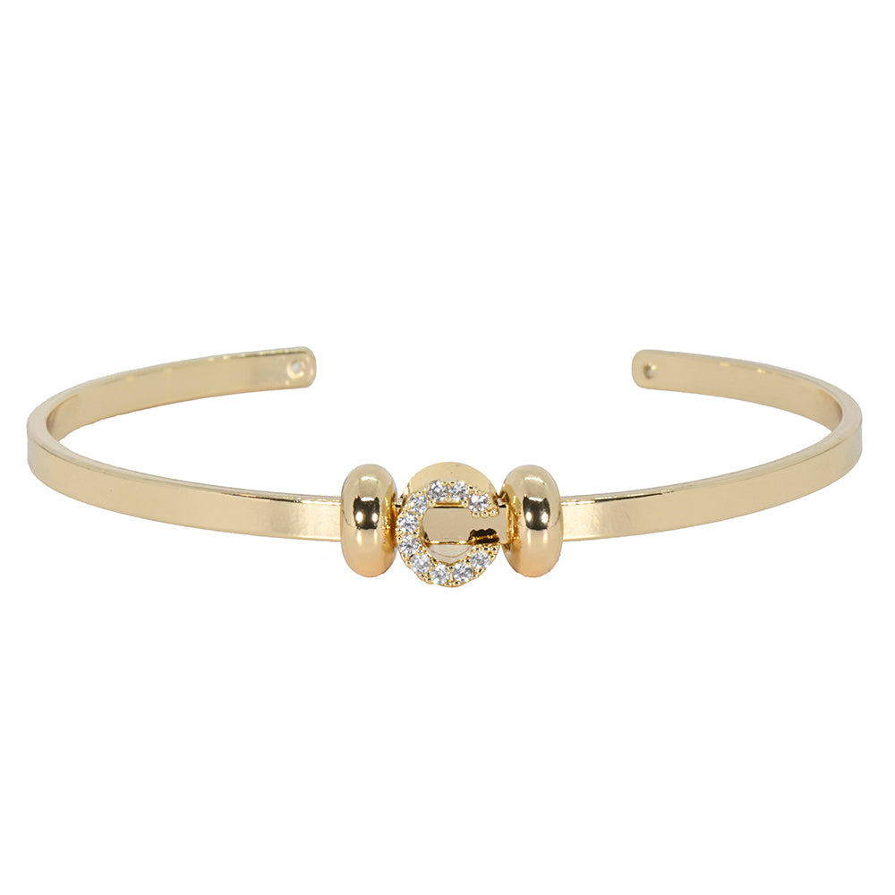 Mini CZ Initial Charm Cuff Letter C