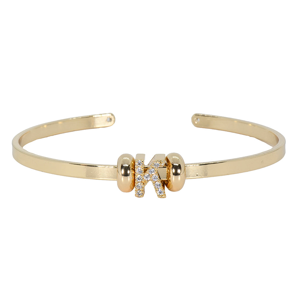 Mini CZ Initial Charm Cuff Letter K