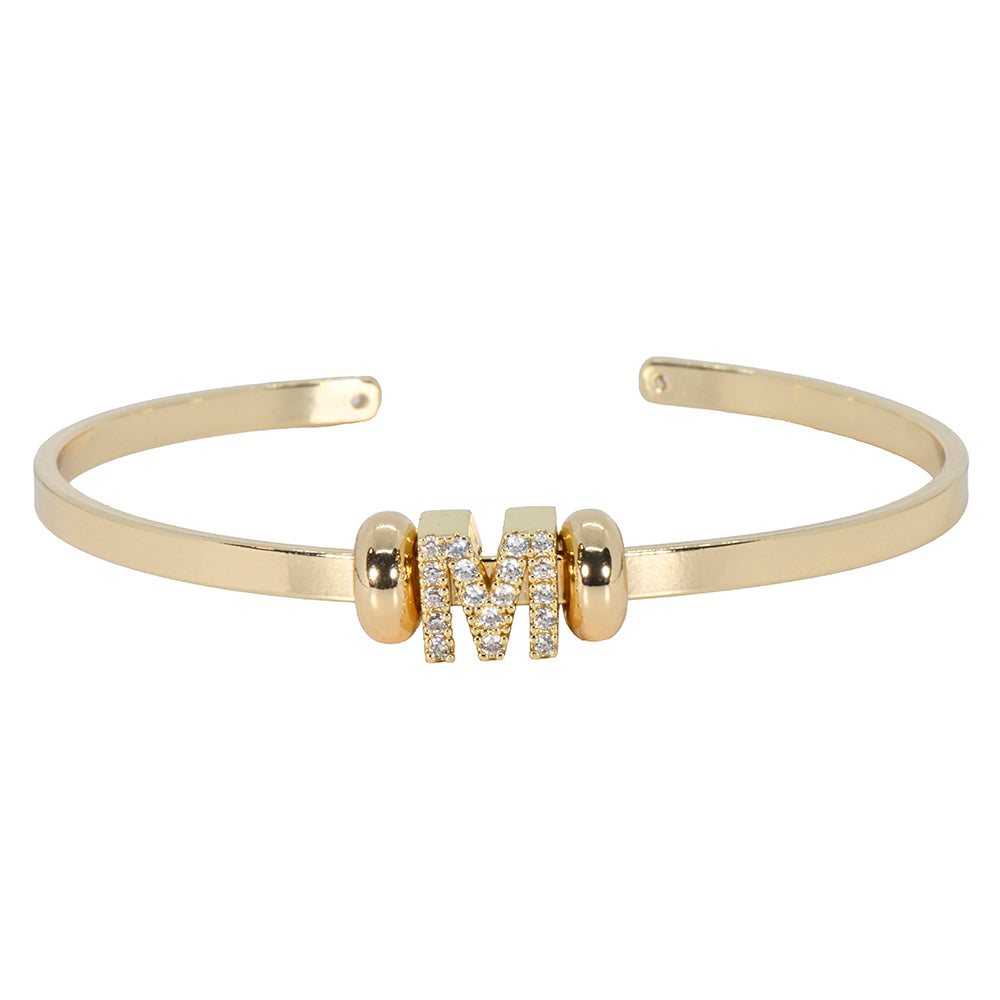 Mini CZ Initial Charm Cuff Letter M
