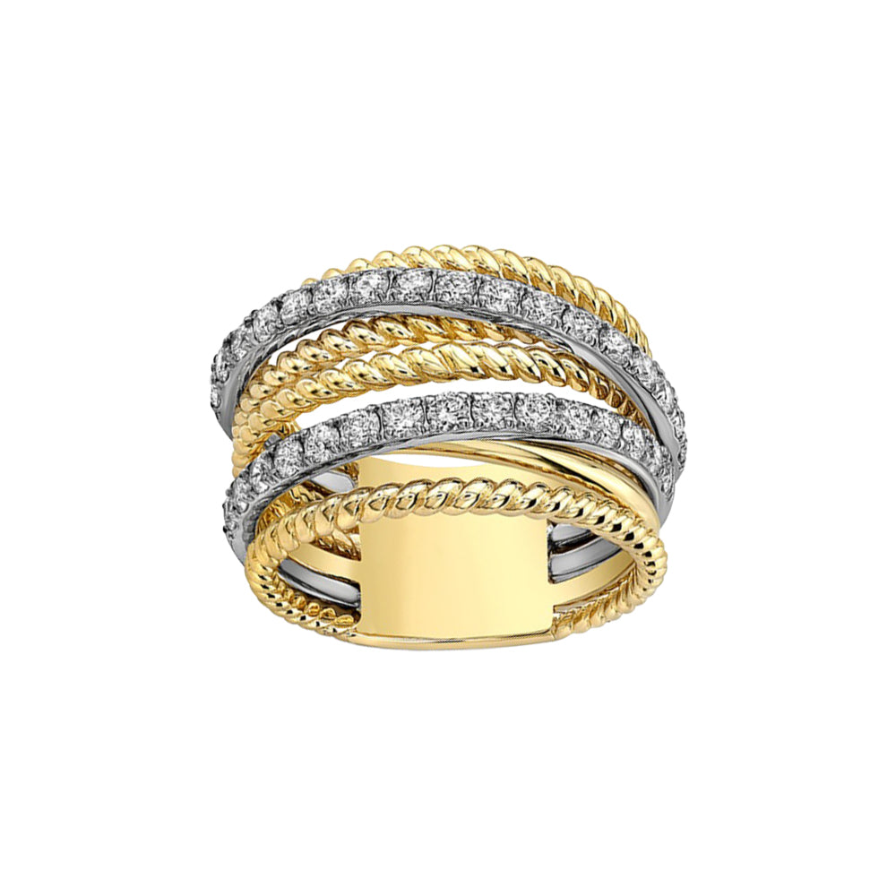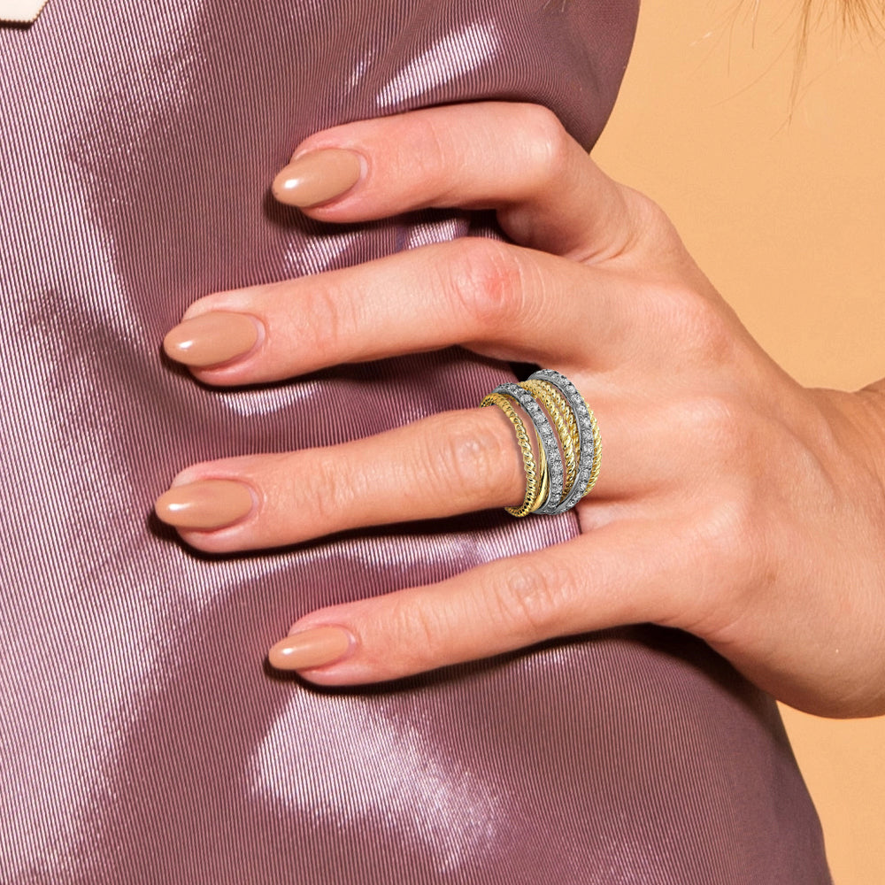 A striking mix of textured rope detail and shimmering stones gives this layered band a bold, luxurious presence with everyday wearability.